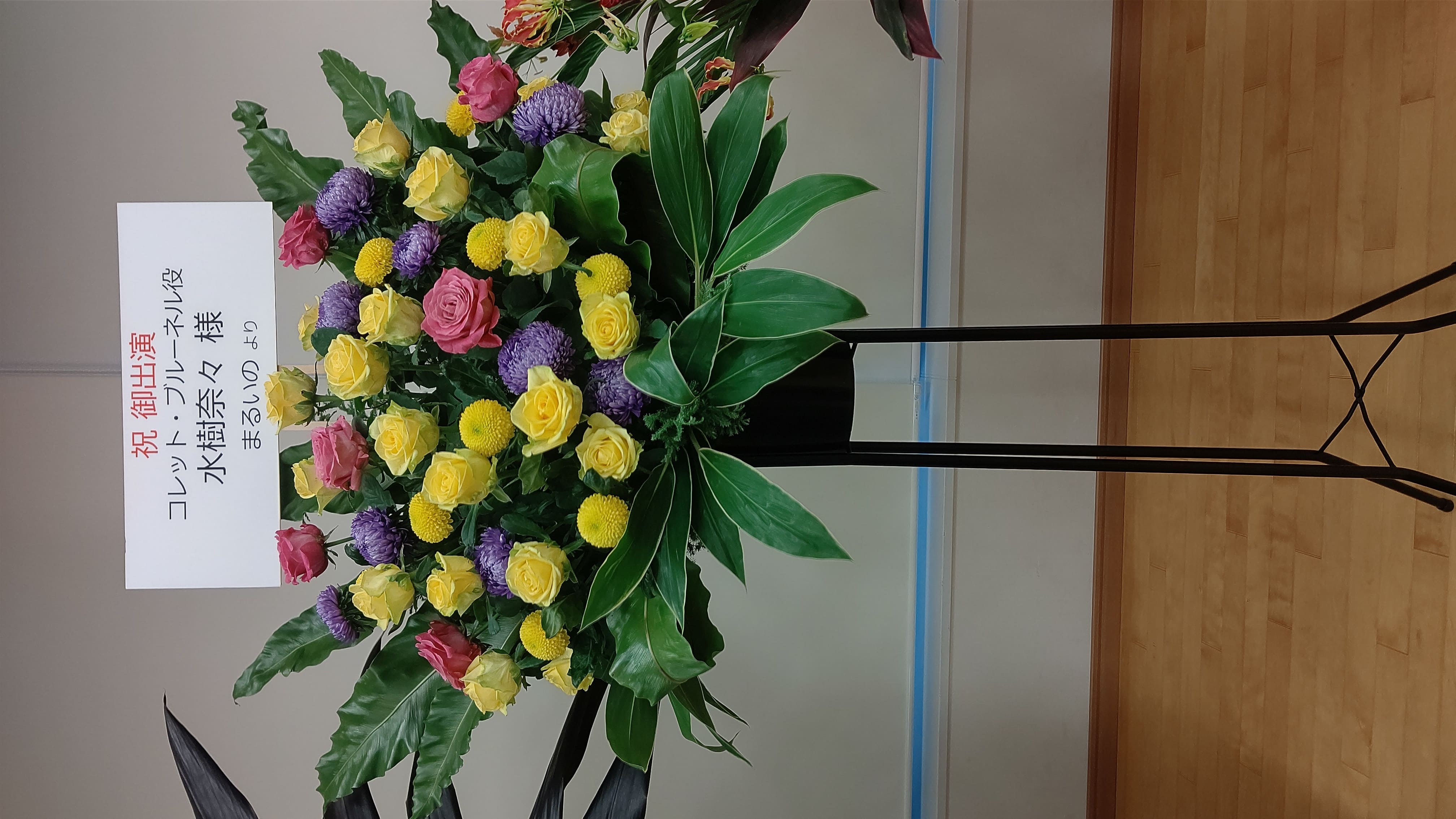 テイルズオブシンフォニア20周年記念イベント TALES OF SYMPHONIA FESTIVAL~20th Anniversary~ 感想 水樹奈々 2023年11月06日 TALES OF SYMPHONIA FESTIVAL ~ 20th Anniversary ~2023年10月21日(土)オリックス劇場(大阪)出演(敬称略)小西克幸(ロイド・アーヴィング役)水樹奈々(コレット・ブルーネル役)折笠愛(ジーニアス・セイジ役)冬馬由美(リフィル・セイジ役)立木文彦(クラトス・アウリオン役)岡村明美(藤林しいな役)小野坂昌也(ゼロス・ワイルダー役)桑島法子(プレセア・コンバティール役)大塚明夫(リーガル・ブライアン役)misono(主題歌アーティスト)私が水樹奈々さんのファンになったきっかけの作品である、ゲーム「テイルズオブシンフォニア」の20周年記念単独イベントが開催されました。「テイルズオブ」シリーズのイベントとして毎年テイルズオブフェスティバルが開催されているのですが、シンフォニアの単独イベントは今回が初めて。そしておそらく小西さん・水樹さん・立木さん・小野坂さん以外は全員がテイルズオブイベント初出演。今時なかなかそろわないような豪華なメンバーが大阪はオリックス劇場に勢ぞろい、というとんでもねえイベントでした。なんせ20年前に新進気鋭の若手だった小西さん水樹さんが、今や押しも押されぬ一流中堅世代として第一線で活躍しているわけですからね……。 お花の話だけ見たい人はここを押してください。◆入場の話めちゃくちゃ入場列長かったです。会場内のグッズ関連展示列とフラワースタンド&キャラパネル列がそれぞれ長くてびっくりしました。◆本編の感想misonoさんが歌うStarry Heavens(ゲームキューブ版OP)からスタート。misonoさん、今年手術した喉の調子が戻っておらず一部は録音済音源のかぶせでの披露になったのですが、サビで客席にマイクを向けてくれて会場中が「夜空を翔ける流れ星を今……♪」って歌えたの、なんかもうとんでもなく涙を誘われました。みんなこの作品を好きなんだなという実感が湧いて本当にちょっと泣きました。ゼロスのルート選択、私の周りの席の人たちはみんな「信じてるからな」を選択していたので、いざゼロスの名シーン回想がクラトスルート選択時の救いの塔だった時、みんなめちゃくちゃ「ええええええ!??」ってなってて面白かったです。私も「ええええなんでええ!?」ってなった。ロイドが最初に思い出すのがコレットだったこと、観客の選択とはいえロイドがアルタミラで会いに行ったのがコレットだったこと、ロイコレ好きとしては本当にうれしかったです。シンフォニアは好感度システムがあるので、プレイヤーによってはロイドの生涯のパートナーはコレットではない誰かになることもあります。たとえパートナーとして選ばれなかったとしてもロイドとコレットの間には特別な絆が存在していてほしい派なので、misonoさんのライブパート前にも二人のかけあいがあってうれしかったです。ロイドの途方もない優しさを愛しているコレットが好きだ……。トークパートで「リハーサルではすべての分岐を練習した」「コレット役水樹さんの隣に立ってるのにコレットを選んでないとき、心の中で「ごめんコレット、ごめん!」って思いながらリハーサルやった」と小西さんが話していてそれもうれしかったし、奈々ちゃんの「ロイドが他の人といちゃいちゃするところなんて見たくないもの……!」の言い回しがなんかすごくコレットでうれしかったです。さっきからうれしかったしか書いてないな。◆お花の話今回、『コレット・ブルーネル役 水樹奈々』さんとして御出演されるということなので、以前からの目標を1つ果たしました。声優として登場する奈々ちゃんにお花を贈ること。奈々ちゃんの単独ライブだっていくつもフラワースタンドが出されています。私がよく行くアイドルマスターSideMのライブには、綺麗なイラストを添えられた色とりどりのフラワースタンドが贈られています。さまざまな知人・友人からフラワースタンドあるいは楽屋花として推しにお花をお贈りした話を聞いてからずっと、いつか奈々ちゃんにお花をお贈りしたいと思っていました。2020年ツアーの千秋楽で楽屋花をお贈りしたいなと思っていたのですが、残念ながらコロナ禍のためツアーは全公演が中止に。2023年ツアーはそもそも贈っていいのかが分からなくて贈れず仕舞い。もしかしてFCより会場に問い合わせたほうがよかったのかな、よく分からん……。今回のシンフォニアイベントはバンダイナムコ主催。バンダイナムコは前述のSideMでお花の受け入れ実績もレギュレーション制定もあります。これは贈り時。というかこれを逃すともうないかもしれない!!水樹奈々さんのファンの一部には、役者としての奈々ちゃんについては興味がない人もいます。あれだけ華々しく素晴らしい歌手活動をされているので、それも仕方のないことではあります。でも私はシンフォニアで、コレットで奈々ちゃんのファンになりました。18年もの間ファンクラブ会員を続け