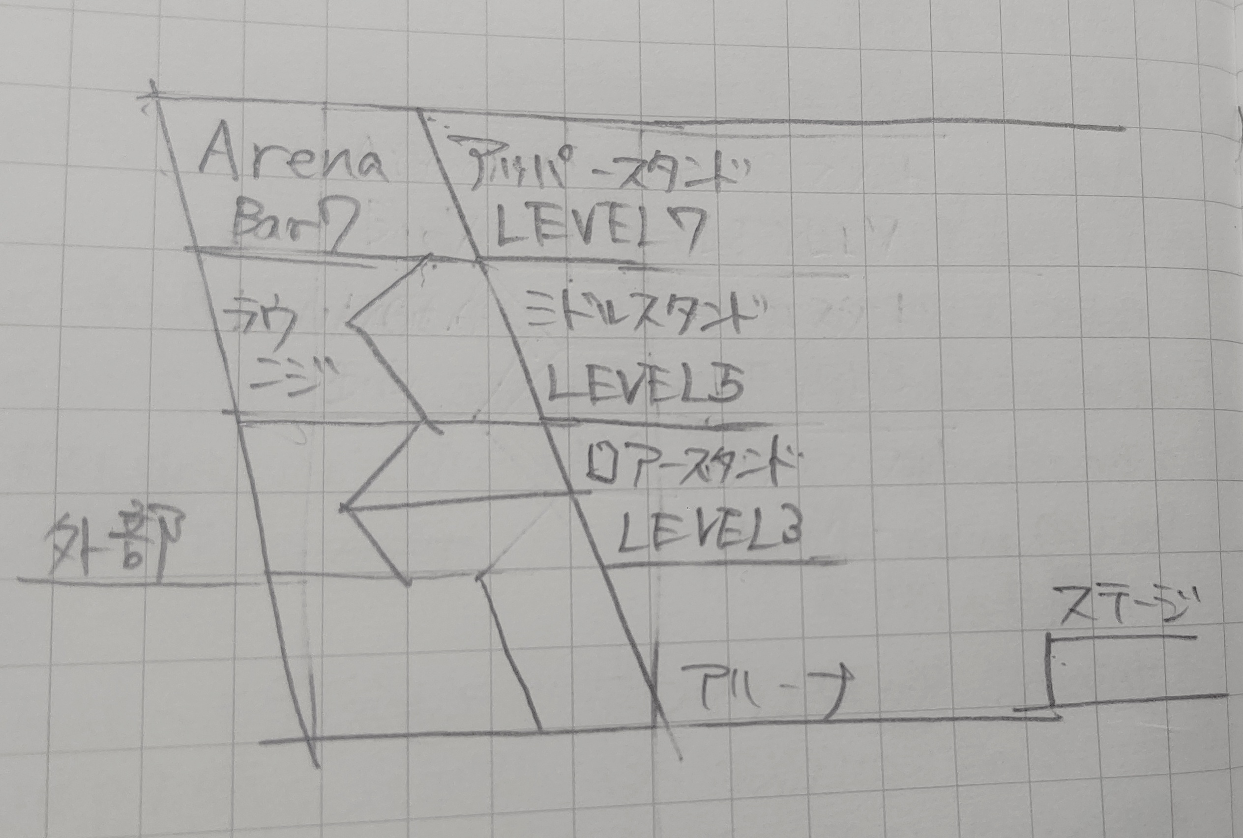 THE IDOLM@STER SideM 8th STAGE - ALL H@NDS TOGETHER-感想 声優 2023年11月11日 THE IDOLM@STER SideM 8th STAGE -ALL H@NDS TOGETHER-2023年10月28日(土)Day1 CATCH MY H@NDS2023年10月29日(日)Day2 CLAP OUR H@NDSKアリーナ横浜※以下の文章では各キャラクターを演じる声優名については敬称略を基本とします。2023年9月29日開業の最新音楽アリーナでの公演。SideMはKアリーナ横浜グランドオープニングシリーズの第二弾、ゲーム・アニメ系コンテンツのトップバッター公演でした。アイマスシリーズだけでもシャイニーカラーズ、ミリオンライブ!が同会場での公演を予定しています。横浜には横浜アリーナ、ぴあアリーナMMと既設のアリーナクラス会場があるものの、どうしても会場の取り合いになってしまっている状態は避けられないので、あらゆるアーティストあらゆるコンテンツがKアリーナ横浜での公演を行っていくことでしょう。 ◆会場の感想◆やっぱりDRAMATIC STARSって最高だ◆楽屋花を出しました◆会場の感想めちゃくちゃ音響が良い。だいたいどんな会場に行っても公演終了後は耳がくわ~~ん……となるのですが、この2日間はまったく全然微塵もならなかった。歌が上手い人めちゃくちゃ歌が上手い。SideMだとAltessimo都築圭役の土岐隼一さんの歌が上手いなーと私は思っているんですが、まあべらぼうに歌が上手かった。でもこの辺は音響スタッフさんにも左右されるかも。トロッコ、上の席から見るの難しい。公式サイトのフロアマップと自分の体感からして会場の断面図はこんな感じだと思うんですけどアリーナのステージから遠いところを走るトロッコを上のフロアから見るのはかなり難しいです。Day1はLEVEL5の9列目から見てたんですが、人の頭で見えなくなるし走行ラインがこの辺だったギリギリ把握できた感じ。LEVEL7だった友人に聞いたら「トロッコ全然見えなかった」そうなので、顔や姿を見てなんぼのアイドルコンサートにはあまり適さないかもしれません。他の演出面で言うとレーザーがとにかく綺麗。公式youtubeチャンネル「アイドルマスターチャンネル」に設営タイムラプスが上がっているので見てみてほしいのですが、まあレーザーが綺麗。めちゃくちゃ綺麗。硲道夫(cv伊東健人)のソロパフォーマンスでのレーザーめちゃくちゃ綺麗でした。これ見る機会があればぜひご覧いただきたい。◆やっぱりDRAMATIC STARSって最高だ※アイマスのユーザーのファンネームは「プロデューサー」なので以下の文章では私はプロデューサーを自称します。自称しますが正直普通にコンテンツを消費しているユーザーです。ご理解ください。私がSideMでプロデュースしているのは、看板ユニットDRAMATIC STARSの3人。天道輝(cv仲村宗悟)、桜庭薫(cv内田雄馬)、柏木翼(cv八代拓)の3人がライブ開幕映像の最初に登場したので、これはドラスタがお当番だな! とのっけから最高潮でした。ドラスタ3人の出演はDay1のみ。前述のとおり、SideM 8th STAGEはKアリーナ横浜のグランドオープニングシリーズに名を連ねる公演であり、同種コンテンツのトップバッターでもあるため、ここで看板ユニットのドラスタがお当番を任せてもらえたことに一安心でもありました。1曲目は「Hands & Claps!」。この8th STAGEのための新曲で、公演前に振り付け動画がアイドルマスターチャンネルにアップロードされていました。難しくない? とか思っていたのですがなんか気づいたらなんとなく踊れているので、振付師ってすごいんだなと思いました。ドラスタはユニット曲「S!T!A!R!ting」でトロッコに乗って登場。ドラスタが初めてトロッコに乗ったのは4thのアンコールパート、3人揃った状態で持ち歌を歌って乗ったのは7thの「RAINY MEMORIES」だったので、こんなに明るく爽やかなトロッコはおそらく初めて。7thでは憂いを帯びた表情だった翼(八代)が今回はにっこり笑って、しかも「夢だって大きい愛だって」のフレーズではマイクを持つ左手に右手を合わせてハートマークを作るものだから、めちゃくちゃテンション上がりました。かわいい。かわいいぞ翼! 世界一かわいいぞ翼! いや世界一かわいいよは某お姫様のためのフレーズなのでアレなんだけどかわいいぞ翼!薫(内田)もやわらかい表情で手を振っていて、アイドル桜庭薫だ……! と感動しました。ゲームなどで薫がファンにはちゃんと笑顔を見せていることは知っているわけですが、それでも実際に薫のパフォーマンスとして微笑んでいる内田さんを見ると、薫だなぁ……と感動してしまうんですよね。私は声優がやる作品ライブって、その人が演じているキャラクターが実際にステージでやるパフォーマンスの芝居だと思っているのですが、真逆の印象を持つ内田さんがしっかり薫としてパフォーマンスしてくれていることに感動するし嬉しく思います。桜庭薫は歌が上手いしファンに優しく微笑むのだ。輝(仲村)はもう本当にブレることなくずっと輝であってくれるので、見ていて安心します。みんなのドラスタ、みんなのセンター天道輝は新設の会場でも